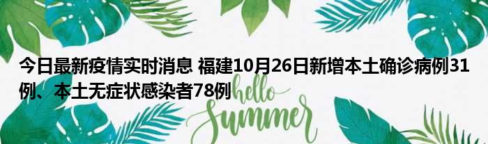 今日最新疫情实时消息 福建10月26日新增本土确诊病例31例、本土无症状感染者78例
