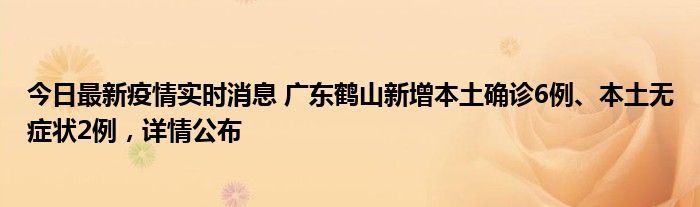 今日最新疫情实时消息 广东鹤山新增本土确诊6例、本土无症状2例,详情公布