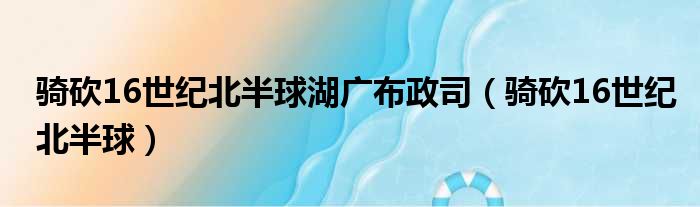 导读 大家好,今天小六子来为大家解答以下的问题,关于骑砍16世纪北半球湖广布政司,骑砍16世纪北半球这个很多人还不知道,现在让我们一起来看看