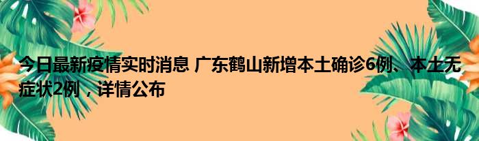 今日最新疫情实时消息 广东鹤山新增本土确诊6例、本土无症状2例,详情公布