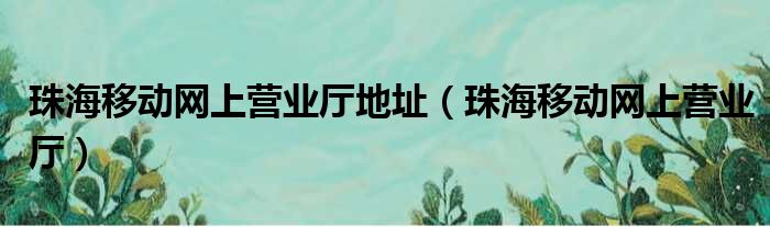 珠海移动网上营业厅地址(珠海移动网上营业厅)