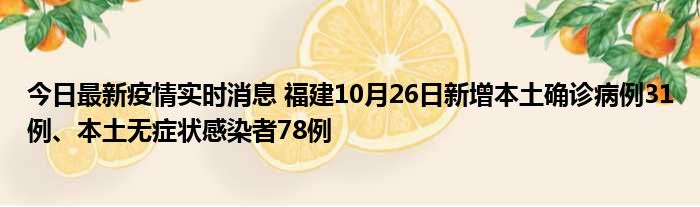 今日最新疫情实时消息 福建10月26日新增本土确诊病例31例、本土无症状感染者78例