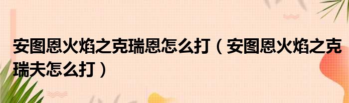 安图恩火焰之克瑞恩怎么打(安图恩火焰之克瑞夫怎么打)
