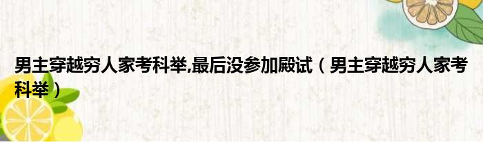 导读 大家好,今天小六子来为大家解答以下的问题,关于男主穿越穷人家考科举,最后没参加殿试,男主穿越穷人家考科举这个很多人还不知道,现在让我