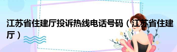 江苏省住建厅投诉热线电话号码(江苏省住建厅)