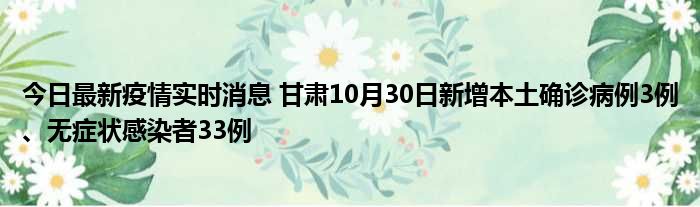 今日最新疫情实时消息 甘肃10月30日新增本土确诊病例3例、无症状感染者33例