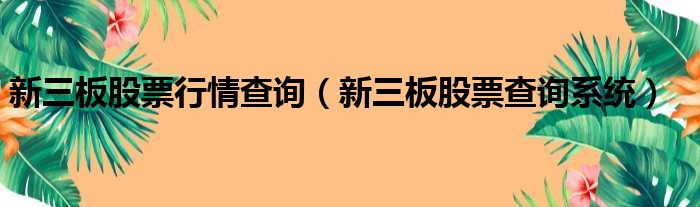导读 大家好,今天小六子来为大家解答以下的问题,关于新三板股票行情查询,新三板股票查询系统这个很多人还不知道,现在让我们一起来看看吧!1、