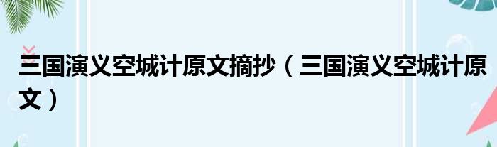 三国演义空城计原文摘抄(三国演义空城计原文)