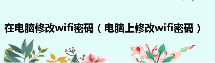 在电脑修改wifi密码(电脑上修改wifi密码)