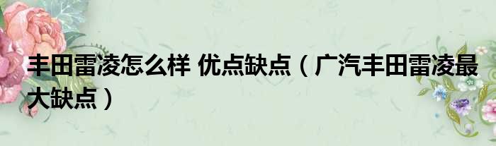 导读 大家好,今天小六子来为大家解答以下的问题,关于丰田雷凌怎么样 优点缺点,广汽丰田雷凌最大缺点这个很多人还不知道,现在让我们一起来看