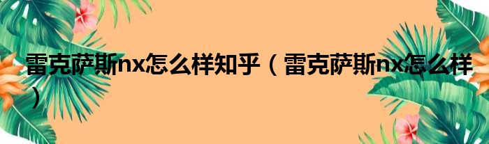 雷克萨斯nx怎么样知乎(雷克萨斯nx怎么样)