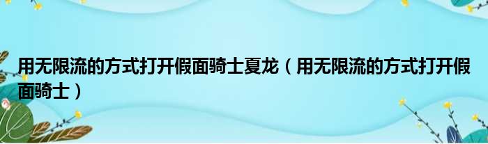 用无限流的方式打开假面骑士夏龙(用无限流的方式打开假面骑士)