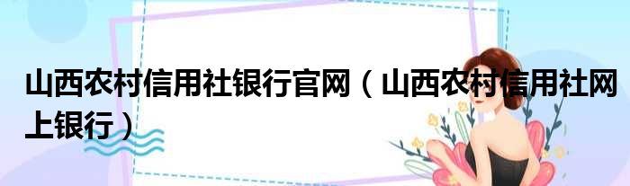 山西农村信用社银行官网(山西农村信用社网上银行)