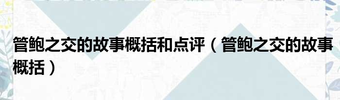 管鲍之交的故事概括和点评(管鲍之交的故事概括)