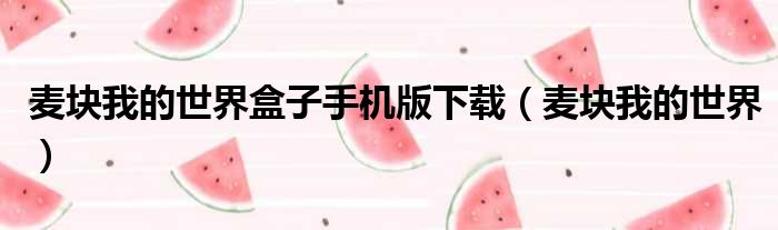 导读 大家好,今天小六子来为大家解答以下的问题,关于麦块我的世界盒子手机版下载,麦块我的世界这个很多人还不知道,现在让我们一起来看看吧!1