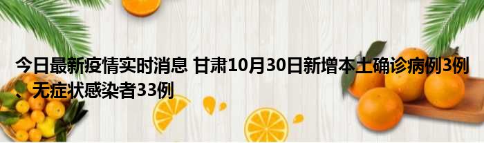 今日最新疫情实时消息 甘肃10月30日新增本土确诊病例3例、无症状感染者33例