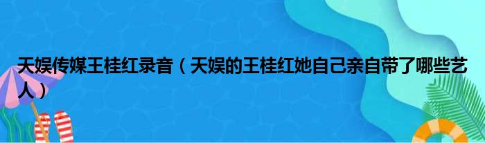 天娱传媒王桂红录音(天娱的王桂红她自己亲自带了哪些艺人)