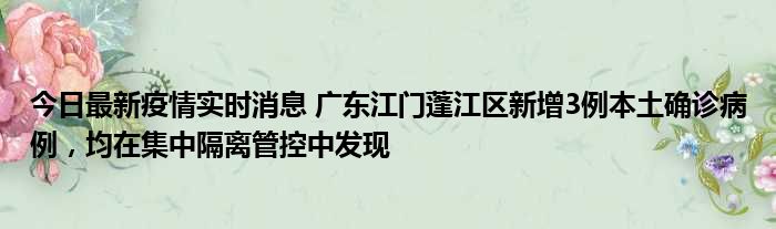 今日最新疫情实时消息 广东江门蓬江区新增3例本土确诊病例,均在集中隔离管控中发现