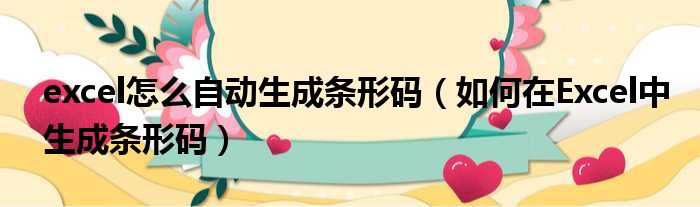 excel怎么自动生成条形码(如何在Excel中生成条形码)