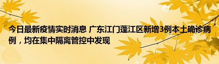 今日最新疫情实时消息 广东江门蓬江区新增3例本土确诊病例,均在集中隔离管控中发现