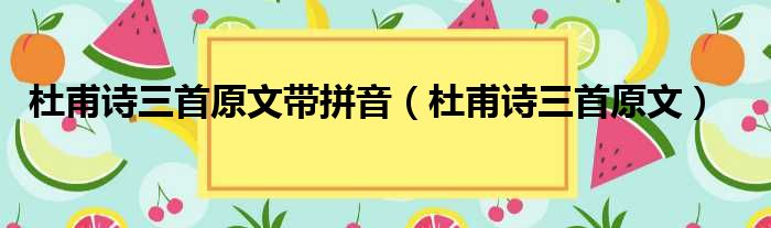 杜甫诗三首原文带拼音(杜甫诗三首原文)