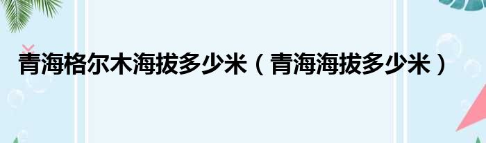 导读 大家好,今天小六子来为大家解答以下的问题,关于青海格尔木海拔多少米,青海海拔多少米这个很多人还不知道,现在让我们一起来看看吧!1、青