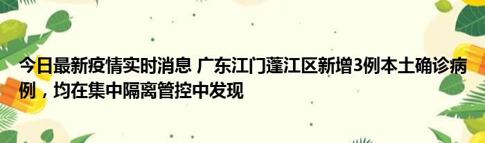 今日最新疫情实时消息 广东江门蓬江区新增3例本土确诊病例,均在集中隔离管控中发现