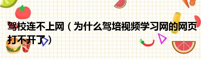 大家好,今天小六子来为大家解答以下的问题,关于驾校连不上网,为什么驾培视频学习网的网页打不开了这个很多人还不知道,现在让我们一起来看看吧!