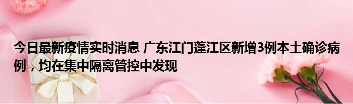 今日最新疫情实时消息 广东江门蓬江区新增3例本土确诊病例,均在集中隔离管控中发现