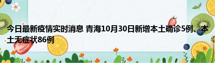 今日最新疫情实时消息 青海10月30日新增本土确诊5例、本土无症状86例