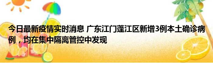 今日最新疫情实时消息 广东江门蓬江区新增3例本土确诊病例,均在集中隔离管控中发现
