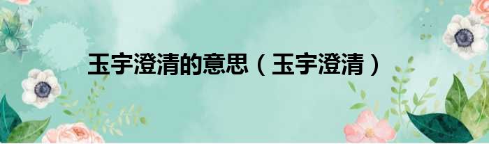 导读 大家好,今天小六子来为大家解答以下的问题,关于玉宇澄清的意思,玉宇澄清这个很多人还不知道,现在让我们一起来看看吧!1、玉宇澄清是指消