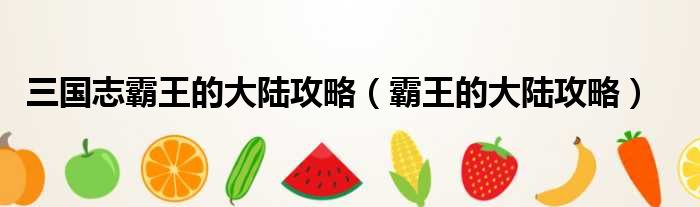 三国志霸王的大陆攻略(霸王的大陆攻略)