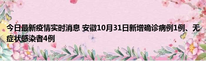 今日最新疫情实时消息 安徽10月31日新增确诊病例1例、无症状感染者4例