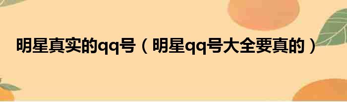 大家好,今天小六子来为大家解答以下的问题,关于明星真实的qq号,明星qq号大全要真的这个很多人还不知道,现在让我们一起来看看吧!
