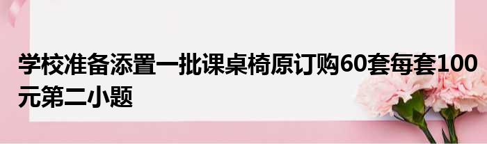 大家好,今天小六子来为大家解答以下的问题,关于学校准备添置一批课桌椅原订购60套每套100元第二小题这个很多人还不知道,现在让我们一起来看看吧!