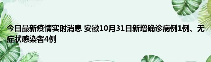 今日最新疫情实时消息 安徽10月31日新增确诊病例1例、无症状感染者4例