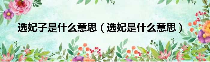 大家好,今天小六子来为大家解答以下的问题,关于选妃子是什么意思,选妃是什么意思这个很多人还不知道,现在让我们一起来看看吧!