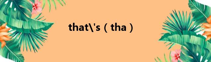 大家好,今天小六子来为大家解答以下的问题,关于that's,tha这个很多人还不知道,现在让我们一起来看看吧!