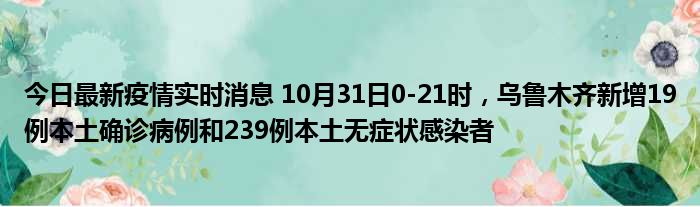 今日最新疫情实时消息 10月31日0-21时,乌鲁木齐新增19例本土确诊病例和239例本土无症状感染者