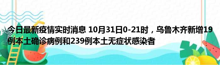 今日最新疫情实时消息 10月31日0-21时,乌鲁木齐新增19例本土确诊病例和239例本土无症状感染者