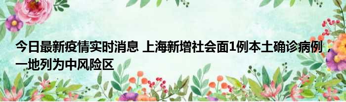 今日最新疫情实时消息 上海新增社会面1例本土确诊病例,一地列为中风险区