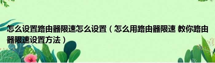 怎么设置路由器限速怎么设置(怎么用路由器限速 教你路由器限速设置方法)