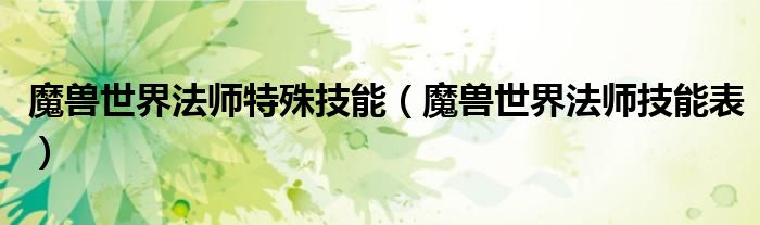 魔兽世界法师特殊技能(魔兽世界法师技能表)