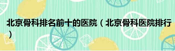 导读 大家好,今天小六子来为大家解答以下的问题,关于北京骨科排名前十的医院,北京骨科医院排行这个很多人还不知道,现在让我们一起来看看吧!1
