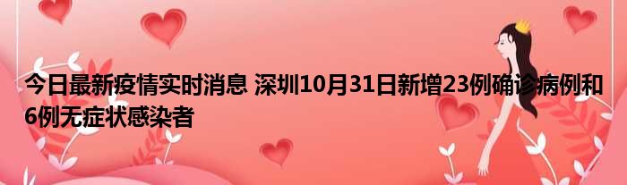据深圳卫健委,10月31日0-24时,深圳新增23例新冠肺炎确诊病例和6例新冠病毒无症状感染者