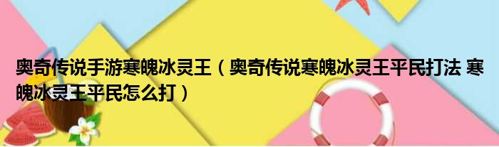 导读 大家好,今天小六子来为大家解答以下的问题,关于奥奇传说手游寒魄冰灵王,奥奇传说寒魄冰灵王平民打法 寒魄冰灵王平民怎么打这个很多人还