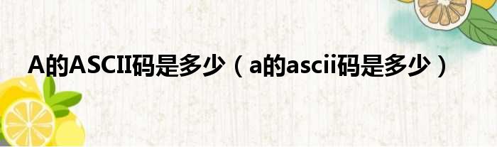 导读 大家好,今天小六子来为大家解答以下的问题,关于A的ASCII码是多少,a的ascii码是多少这个很多人还不知道,现在让我们一起来看看吧!1、A的A