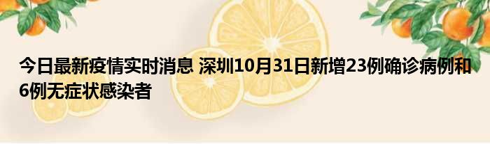 今日最新疫情实时消息 深圳10月31日新增23例确诊病例和6例无症状感染者