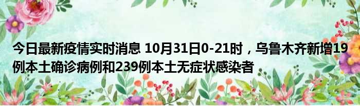 今日最新疫情实时消息 10月31日0-21时,乌鲁木齐新增19例本土确诊病例和239例本土无症状感染者